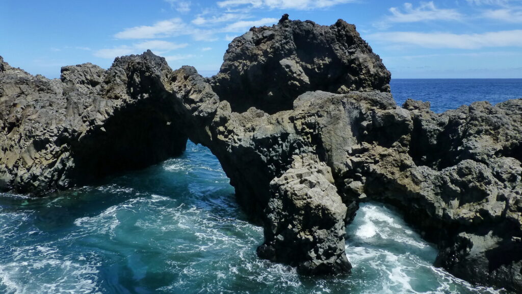 – les sculptures naturelles en roche basaltique, des arches où passent les flots